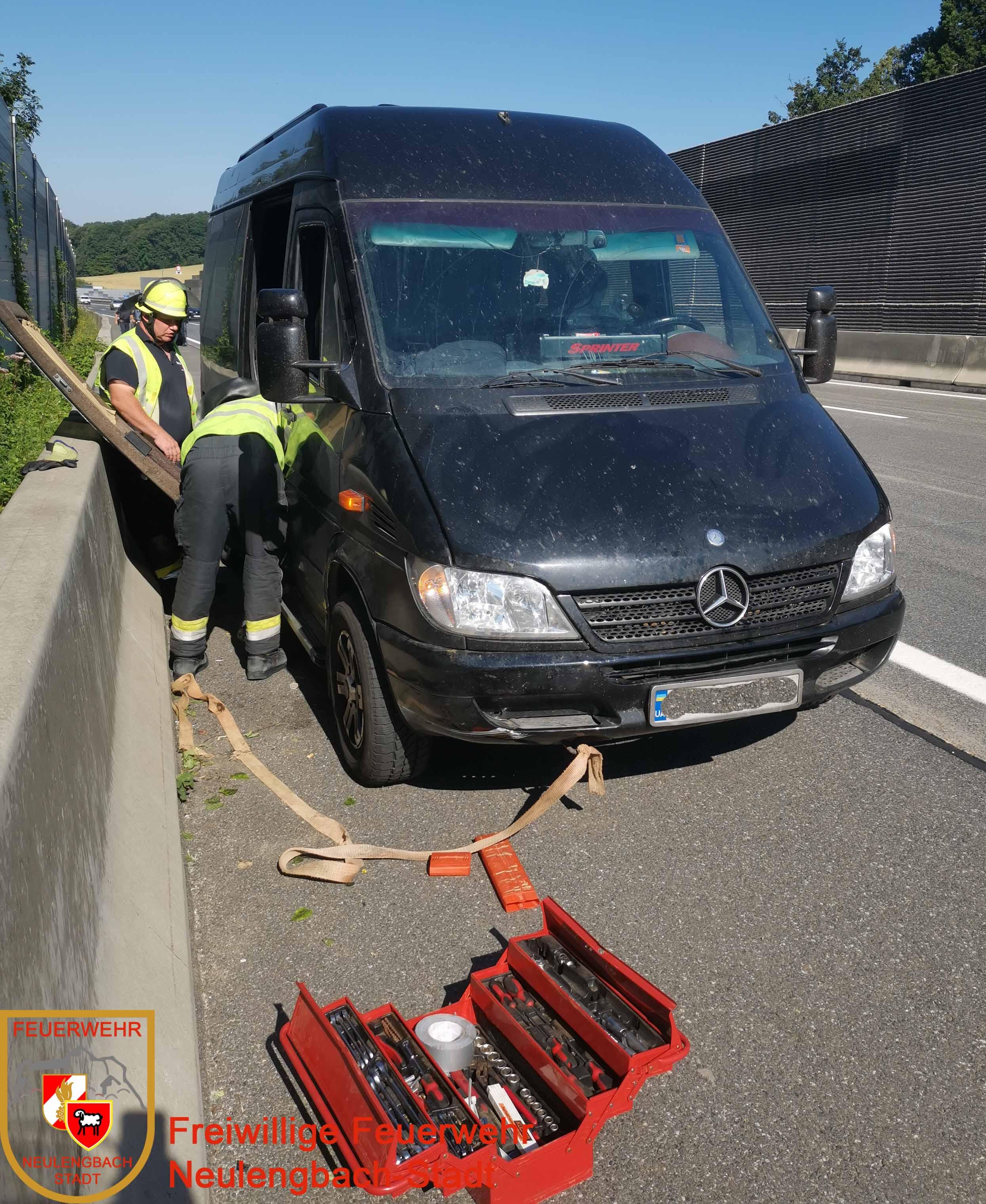 Die Erste erfolgte um 08:44 Uhr auf die A1 in Fahrtrichtung Wien. Dabei kam ein Sprinter mit mehreren Insassen aufgrund eines technischen Defekts zum Stillstand. Dieser wurde mit dem Abschleppseil an das Wechselladefahrzeug angehängt und auf die Raststation geschleppt. Der Personentransfer erfolgte mit dem Versorgungsfahrzeug und dem Polizeiauto ebenfalls zur Raststation.