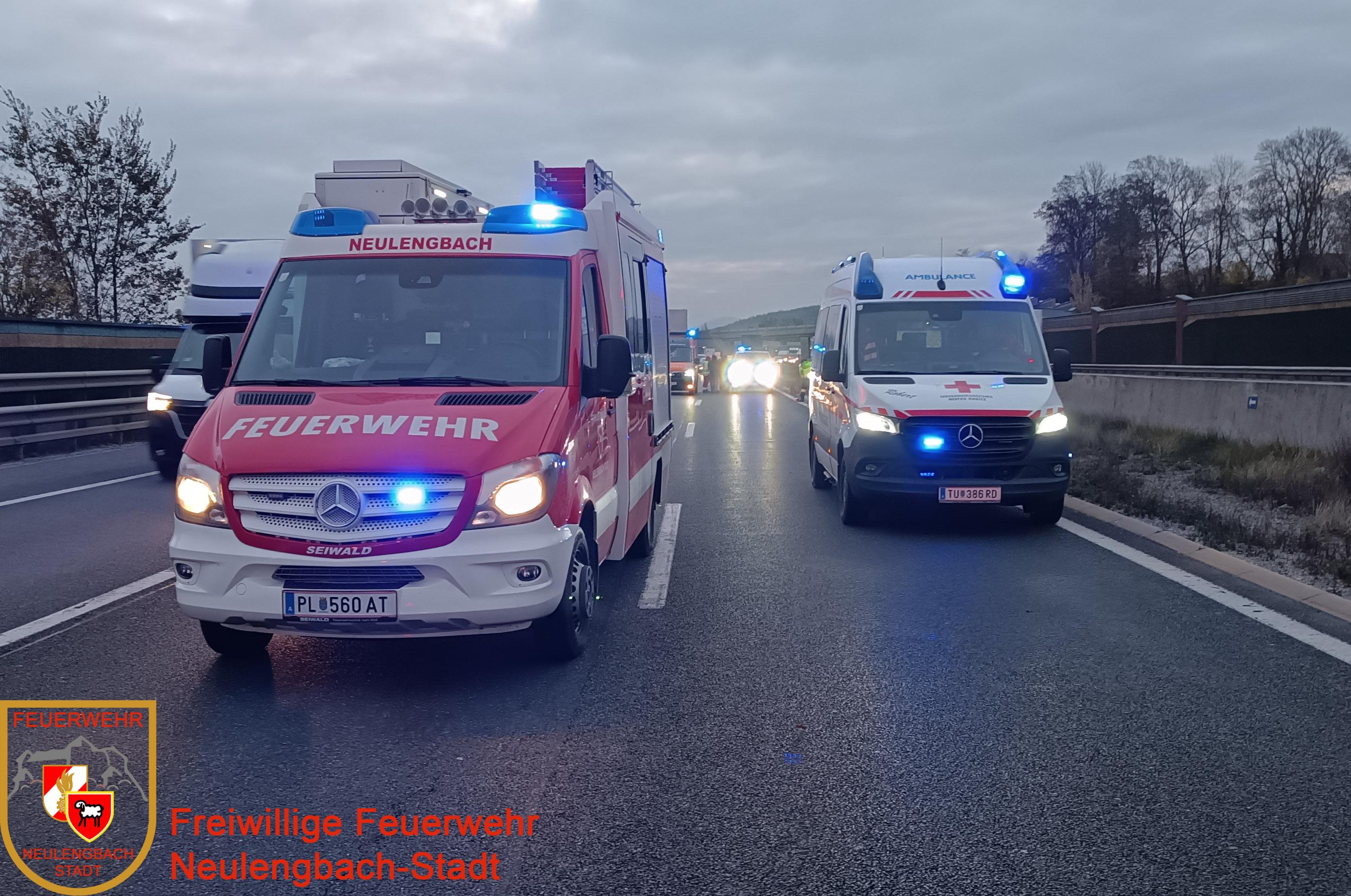 Am 14.11.2024 um 06:32 Uhr wurden die Freiwillige Feuerwehr Neulengbach-Stadt gemeinsam mit der Freiwillige Feuerwehr Kirchstetten zu einer Menschenrettung auf die Westautobahn bei km 44 alarmiert. Beim Ausrücken konnte uns bereits durch die BAZ St. Pölten mitgeteilt werden, dass keine Personen eingeklemmt sind. Trotzdem fuhren beide Feuerwehren zur Einsatzstelle zu. Beim Eintreffen und erkunden konnte festgestellt werden, dass zwei Fahrzeuge zusammengestoßen sind, aufgrund, dass beide Fahrzeuge geborgen werden mussten wurde Schwerrüstfahrzeug Neulengbach und das Wechselladefahrzeug St. Pölten zur Einsatzstelle nachgefordert. Danach wurden die beiden Fahrzeuge geborgen und gesichert abgestellt. Weiters wurde die ASFINAG bei der Reinigung der Fahrbahn unterstützt.