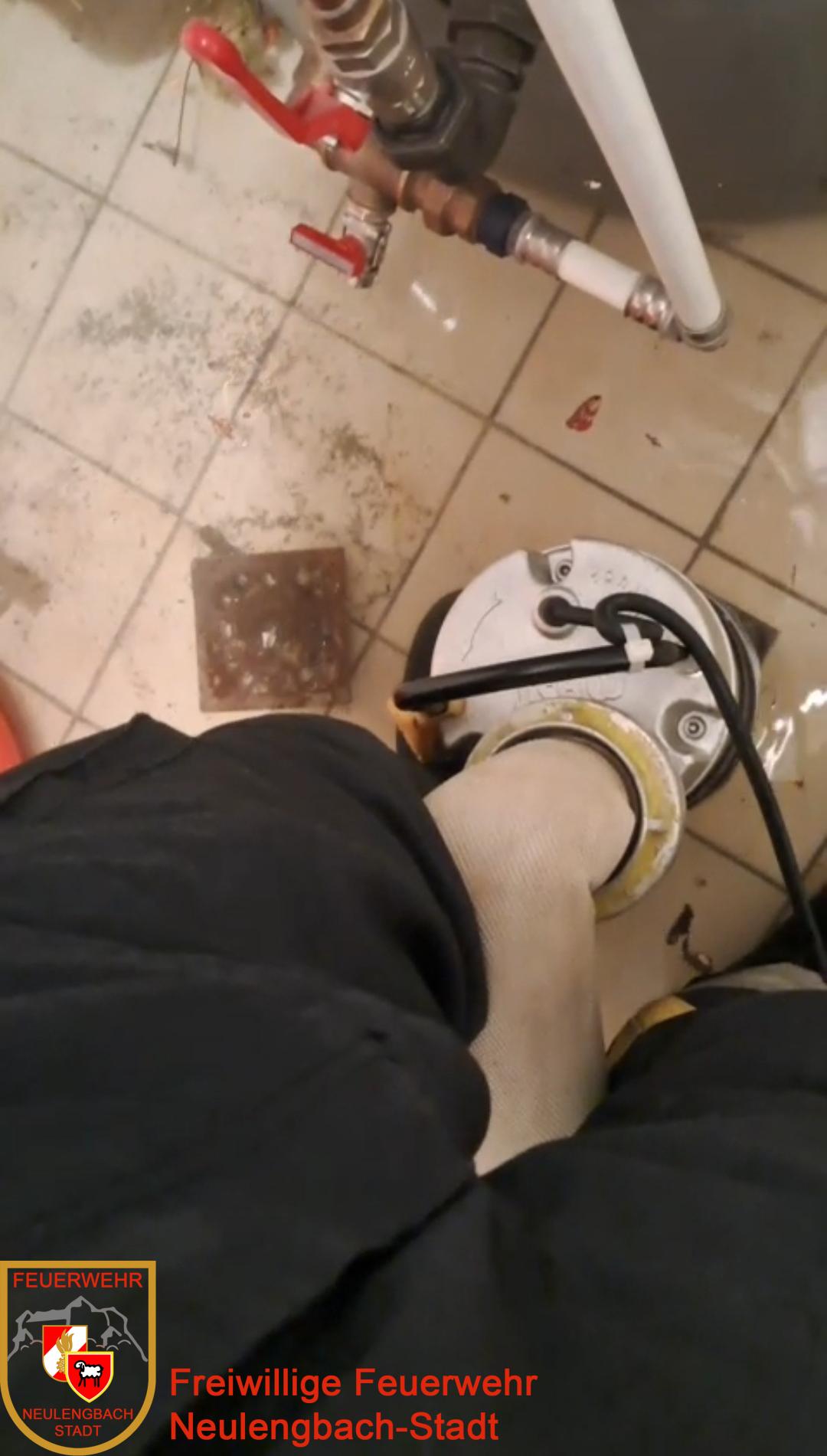 Mit dem Schwerrüstfahrzeug, das zwei große Pumpen mitführt, wurde umgehend zur Einsatzadresse ausgerückt. Kurz darauf folgten weitere Einsatzkräfte mit dem Mannschaftstransportfahrzeug und brachten zusätzlich einen Nasssauger zum Einsatzort.