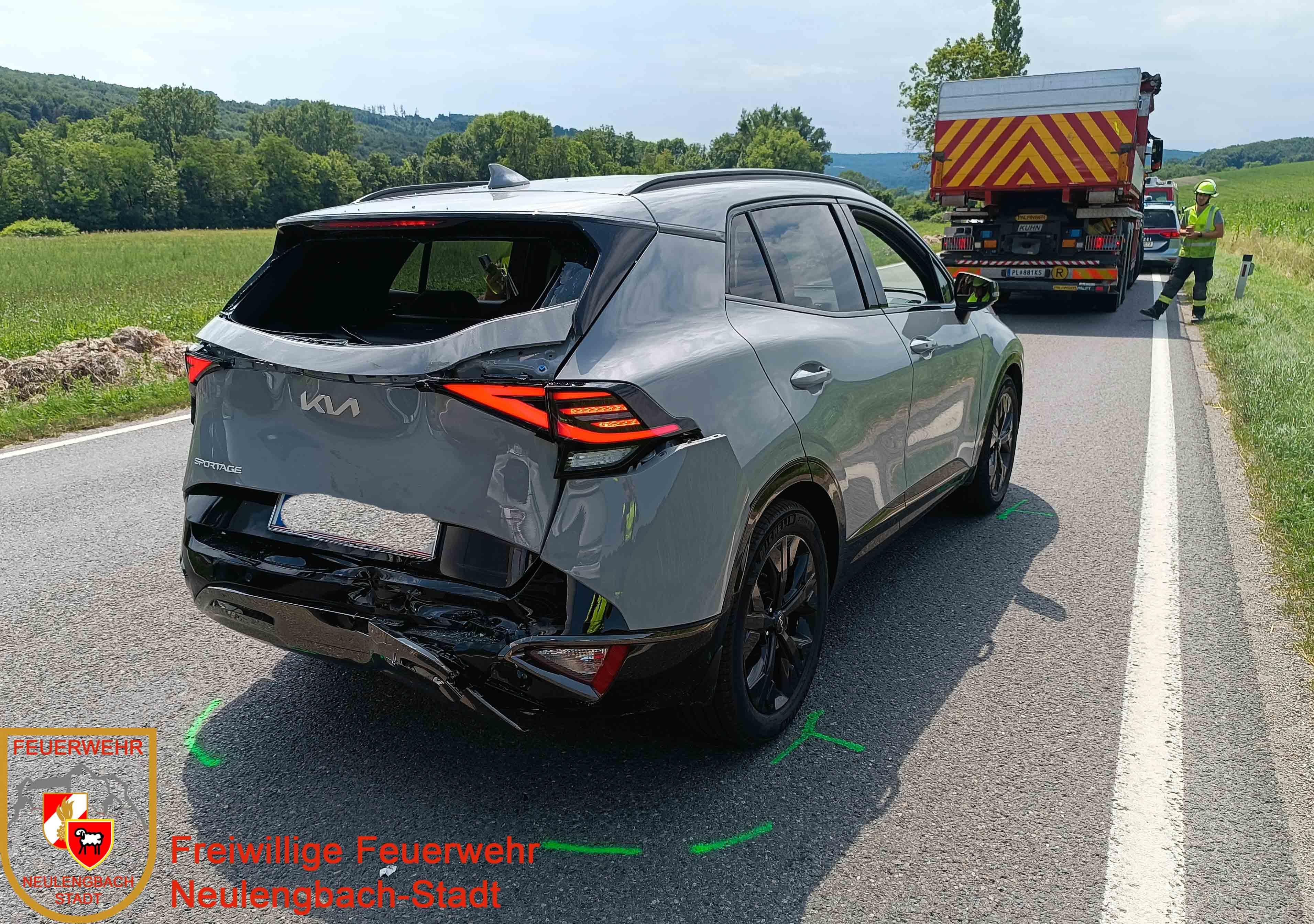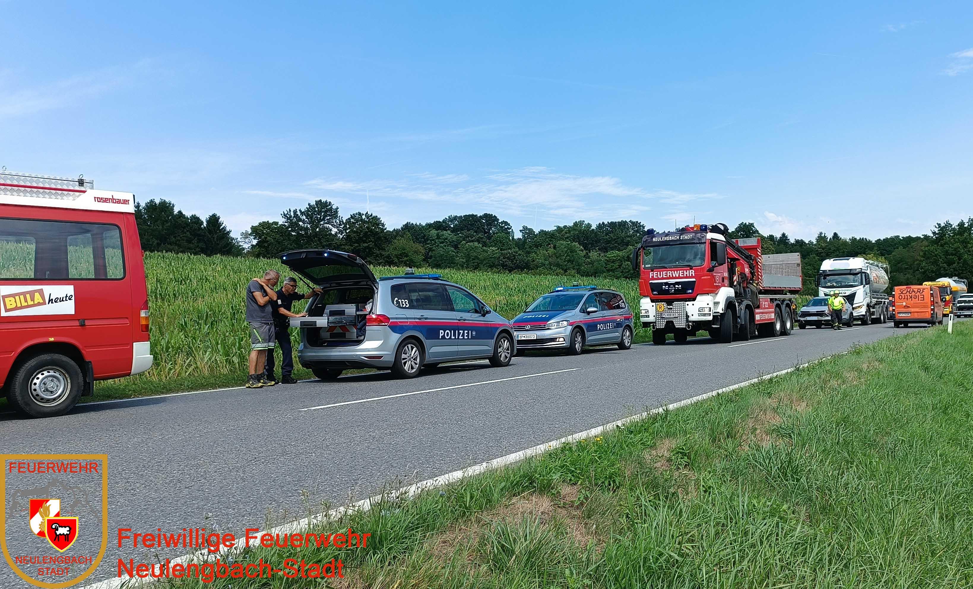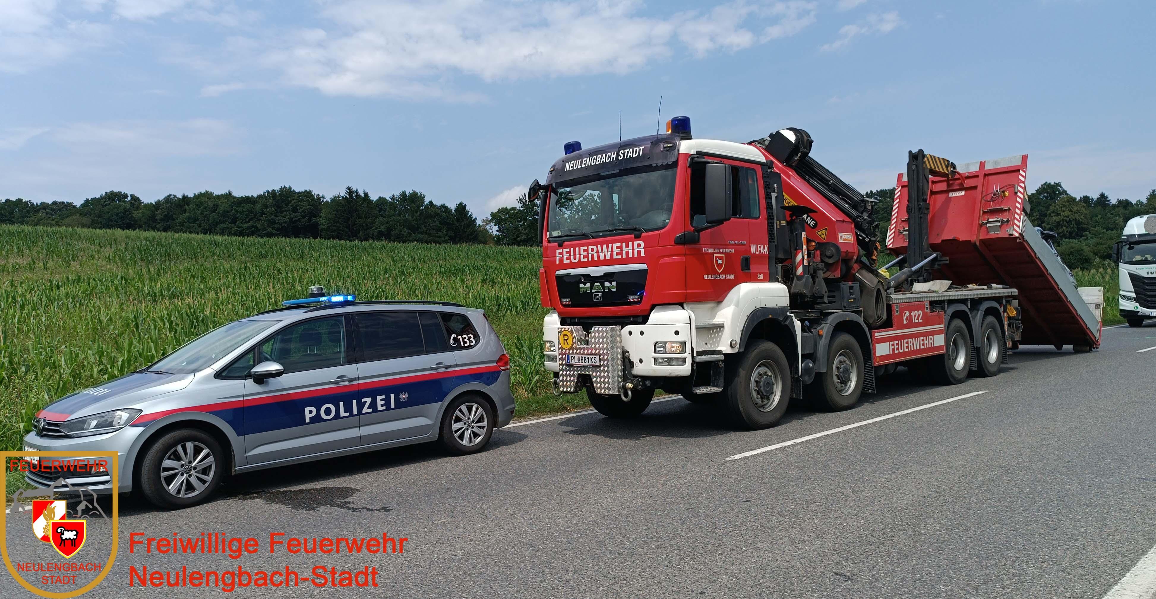 Die FF Neulengbach-Stadt rückte mit dem WLF und dem Versorgungsfahrzeug aus. Vor Ort regelte die Polizei den Verkehr wechselweise an der Unfallstelle vorbei. Nach Freigabe durch die Exekutive wurde der beschädigte PKW auf das Bergeplateau gezogen, abtransportiert und gesichert abgestellt. Der beteiligte LKW war noch fahrbereit und konnte die Fahrt eigenständig in eine Werkstatt fortsetzen. Die Fahrbahn wurde von dem Streckendienst der Straßenmeisterei gereinigt.