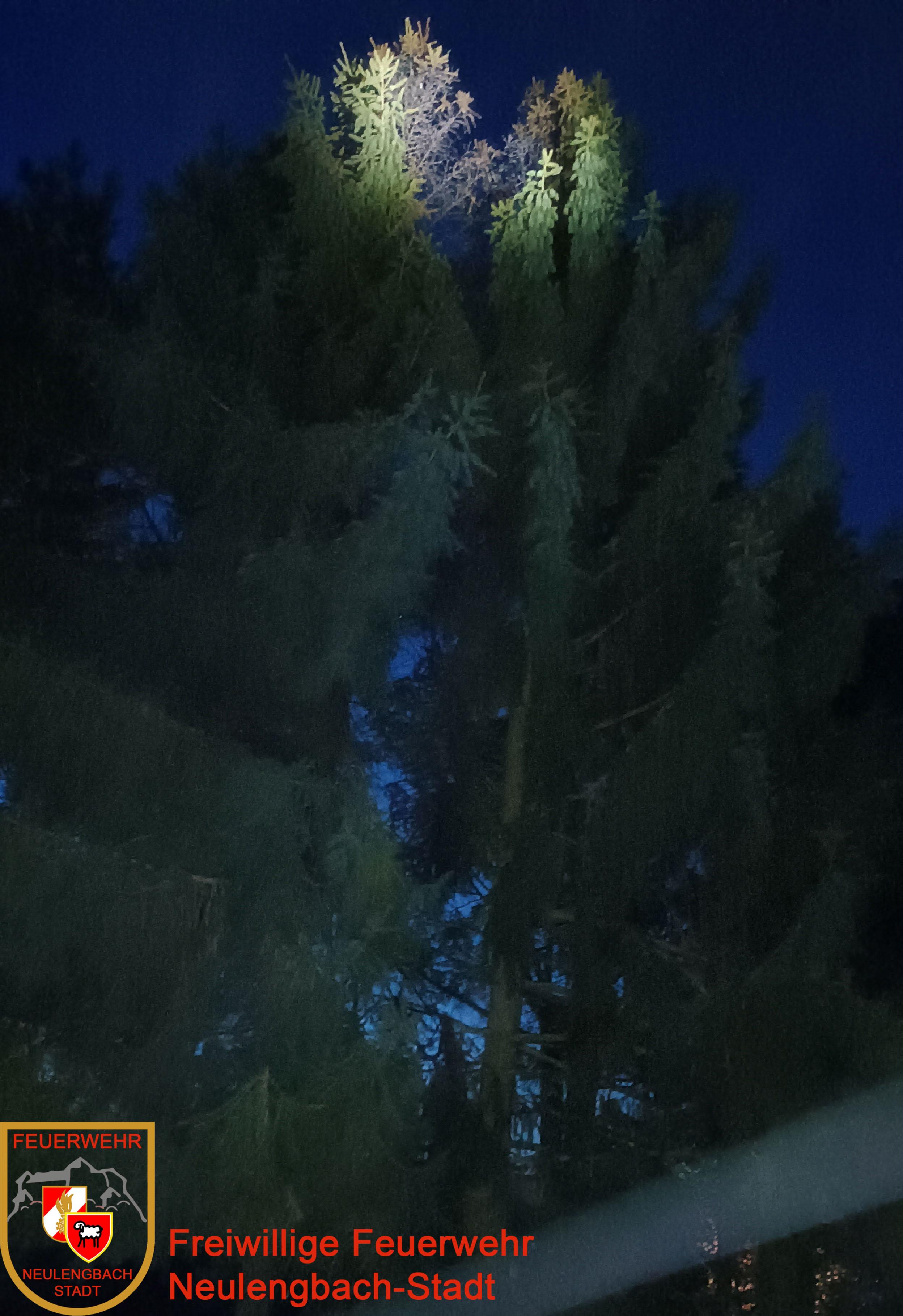 Beim Eintreffen der ersten Einsatzkräfte bot sich folgende Lage: Zwei Bäume sowie der Boden im unmittelbaren Bereich standen in Brand. Besonders kritisch war dabei, dass sich das Feuer oben in rund 12 Meter Höhe ausgebreitet hatte. Glücklicherweise war bereits eine zuerst eingetroffene Polizeistreife vor Ort, die sofort erste Löschmaßnahmen mit einem Feuerlöscher sowie einem Gartenschlauch eingeleitet hatte. Diese rasche und beherzte Reaktion zeigte große Wirkung und konnte eine weitere Ausbreitung des Feuers deutlich eindämmen.
