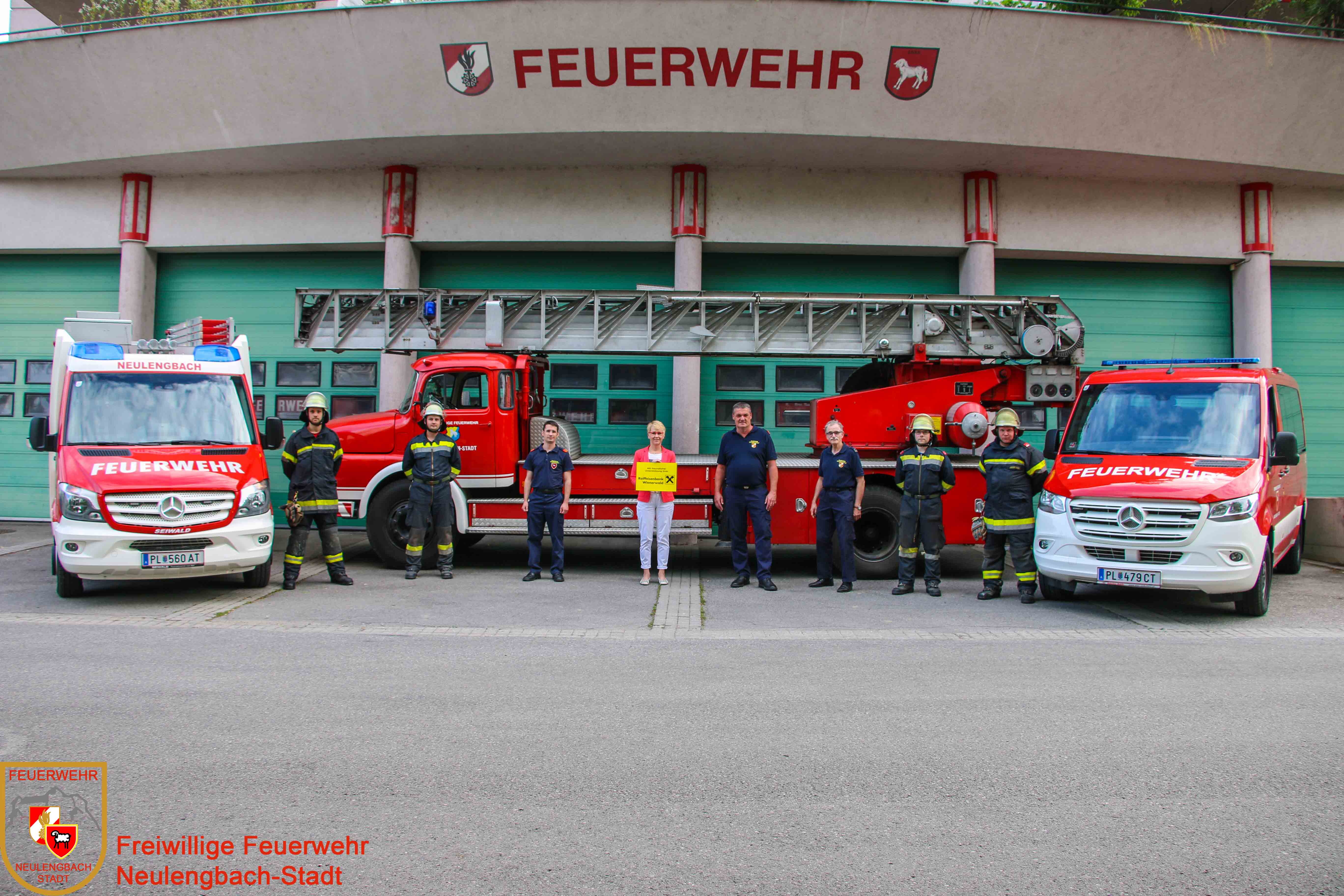 Die Freiwillige Feuerwehr Neulengbach-Stadt erhielt finanzielle Unterstützung durch die Raiffeisenbank Wienerwald. Bankstellenleiterin Bettina Welke kam persönlich zum Feuerwehrhaus Neulengbach, um vor Kommandant Michael Mascha, Kommandantstellvertreter Michael Schröder und weiteren Teilen der Mannschft unserem Verwalter Michael Dietl eine Spende der Raiffeisenbank zu überreichen.