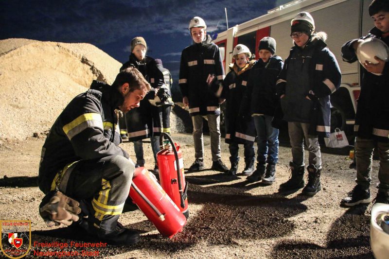 Die Burschen unserer Jugendgruppe erhielten von ihren Betreuern zuerst eine detaillierte Einweisung in die verschiedenen Arten, die Handhabung und den Einsatz von Handfeuerlöschern, bevor es ans reale Feuer geht. Alle Mitglieder unserer Feuerwehrjugend durften dann unter Aufsicht der Jugendbetreuer einen Christbaumbrand löschen.