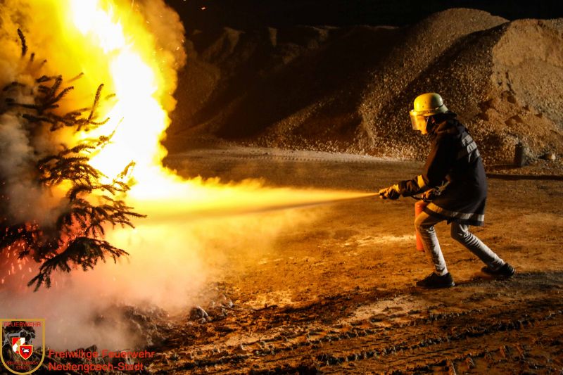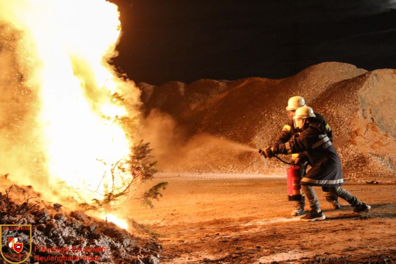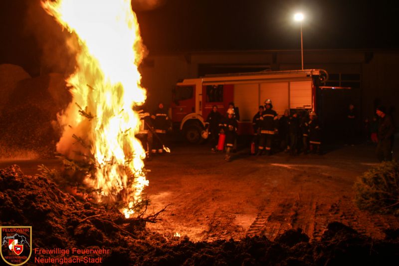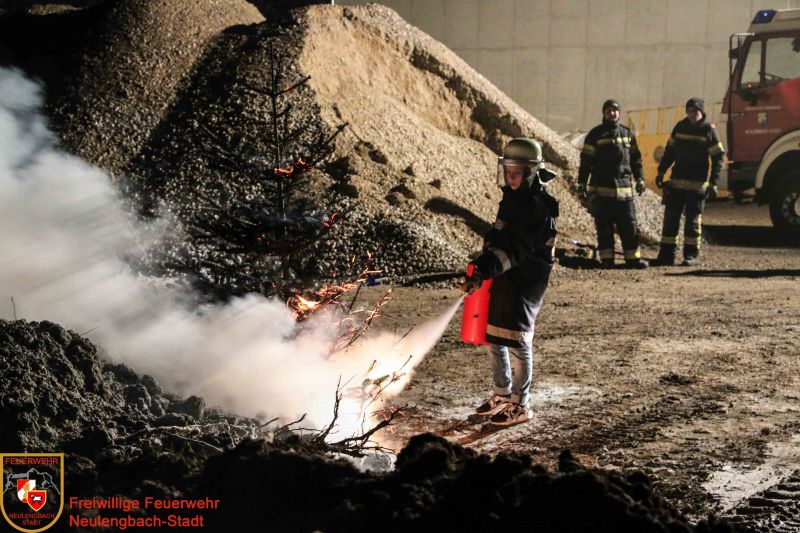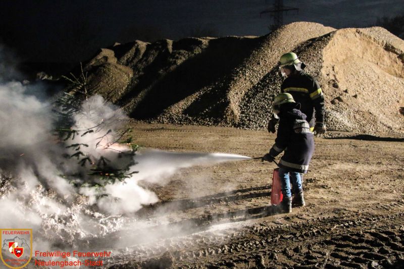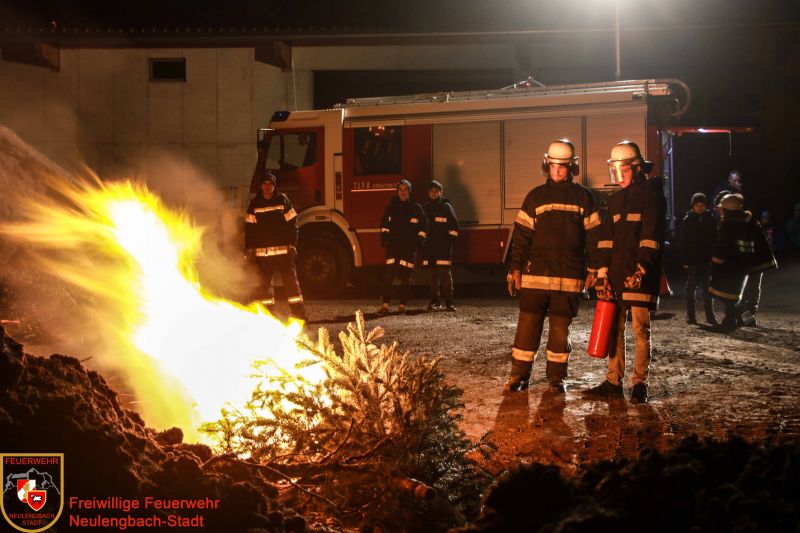 Traditionell ist der Inhalt der ersten Jugendstunde im Jahr bei unserer Feuerwehrjugend: Brandbekämpfung mit Handfeuerlöschern. Als Brandobjekt dienen dabei die gut getrockneten Christbäume aus den Haushalten unserer Feuerwehrkameraden.