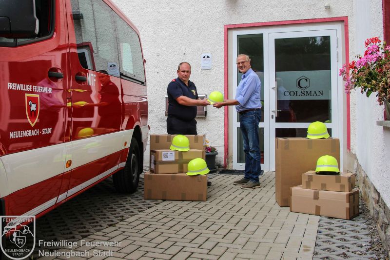 Unsere neuen Helme wurden von zwei Kameraden direkt beim Hersteller abgeholt, wo es sich der geschäftsführende Gesellschafter der Colsman GmbH Herr Peter Colsman nicht nehmen ließ, die wertvolle Fracht persönlich zu übergeben. In Neulengbach konnten die Helme dann - zwar ohne große Feierlichkeit aber in einem dem seltenen Anlassfall entsprechend doch würdigen Rahmen - von Kommandant Michael Mascha und Kommandantstellvertreter Michael Schröder an die Mitglieder der Freiwilligen Feuerwehr Neulengbach-Stadt überreicht werden.