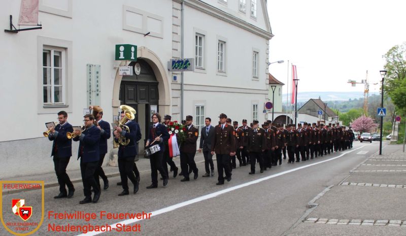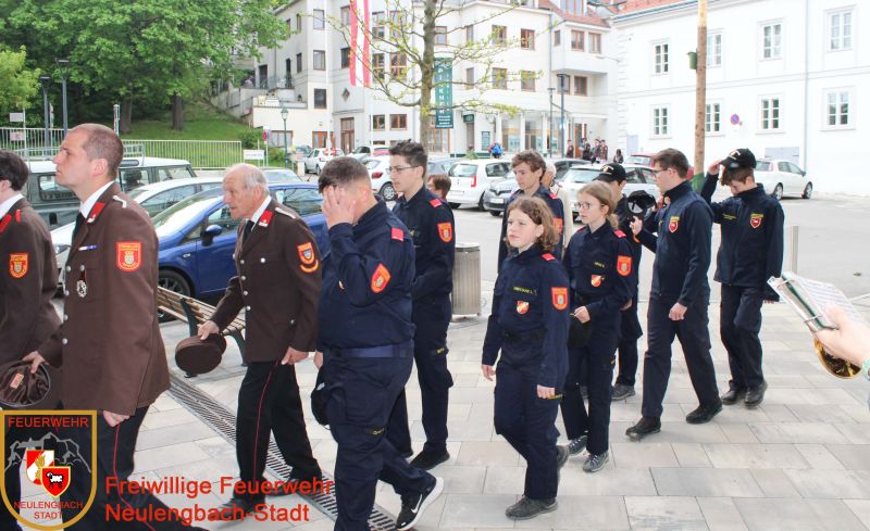 Nach zweijähriger Coronapause wurde wieder gemeinsam mit Blasmusik durch den Markt zur Kirche marschiert. Dort legten die Jugendmitglieder der vier Feuerwehren Ihre Versprechen vor Ihren Kommandanten und dem Abschnittsfeuerwehrkommandanten BR Kraus ab. Im Anschluss an den Gottesdienst segnete Pfarrer Boguslaw Jackowski einen Kranz, der von den Kommandos der vier Feuerwehren und Herrn Bürgermeister Rummel im Andenken an alle im Dienst verstorbenen und in den Kriegen gefallenen Feuerwehrkameraden am Kriegerdenkmal am Friedhof Neulengbach niedergelegt wurde. Anschließend lud die Stadtgemeinde Neulengbach zu einem gemeinsamen Frühshoppen im Gasthaus Köcher ein.