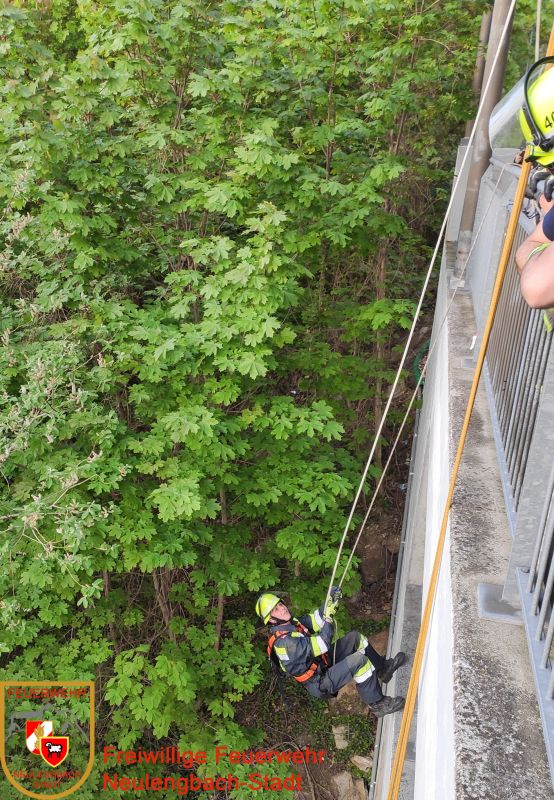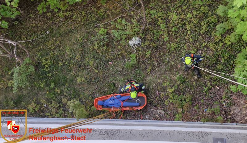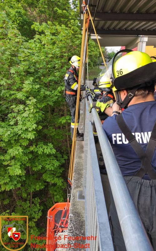 Die Übung am 04.05.2022 baute auf der am 06.04.2022 durchgeführten Übung auf und hatte das Retten von Verletzten aus Tiefen zum Thema.