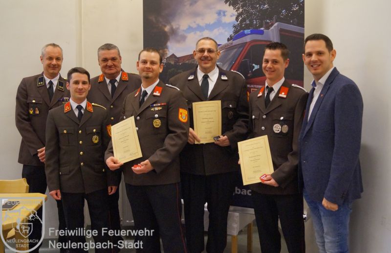 In seiner Grußadresse dankte Bürgermeister Jürgen Rummel der Feuerwehr für die gute Zusammenarbeit, besonders bei der Adventveranstaltung, dem Reserlmarkt und auch dem Feuerwehrlauf, der der Stadtgemeinde eine Ausrichtung eines Stadtlaufes in Zukunft erspare; die Feuerwehr sei eine wichtige Säule der Sicherheit im Ort, die in Neulengbach auch durch die neue Bezirksstelle des Roten Kreuzes und die Polizeidienststelle mit 15 Planposten gewährleistet werde. Abschnittskommandant Richard Kraus lobte die Neulengbacher Feuerwehr als „freiwillig, aber professionell“ und dankte den Neulengbacher Kameraden, die als Funktionäre im Abschnitt tätig sind, und Bezirkskommandant Georg Schröder stellte der Wehr das Zeugnis „top ausgebildet, top ausgerüstet und top motiviert“ aus und dankte für das Engagement. Abschließend lud der Bürgermeister zum Abendessen ins Gasthaus Köcher.