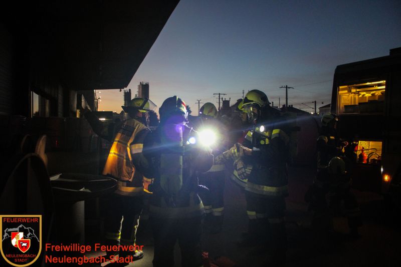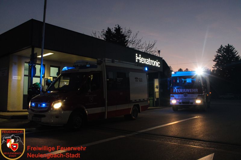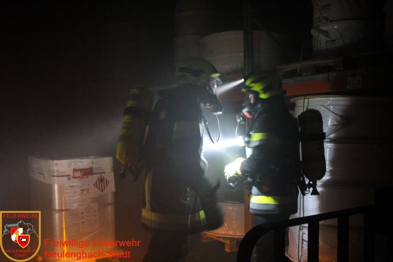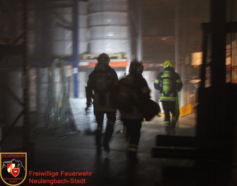 Das ersteintreffende Fahrzeug, Vorrausrüst Neulengbach, konnte über die Brandmeldezentrale den ausgelösten Brandmelder auslesen. Desweiteren auf dem Lageplan feststellen, dass es sich um eine Lagerhalle auf untersten Ende des Werkgeländes handelt. Die ebenfalls alarmierte Feuerwehr Raipoltenbach traf mit ihrem Tanklöschfahrzeug ein. Noch beim Einfahrtstor bekam der Gruppenkommandant TLF Raipoltenbach vom Einsatzleiter den Auftrag zur Betroffenen Halle vorzufahren und einen Atemschutztrupp zu stellen, der mit der Menschenrettung beginnen soll. Kurz darauf traf auch das Löschfahrzeug Neulengbach ein, erhielt den Auftrag eine Löschwasserversorgung zu Tank Raipoltenbach herzustellen sowie einen Reserve Atemschutztrupp zu stellen. Die Kameraden der FF Raipoltenbach arbeiteten sehr effizient, retteten rasch die Person und löschten den Brand.
