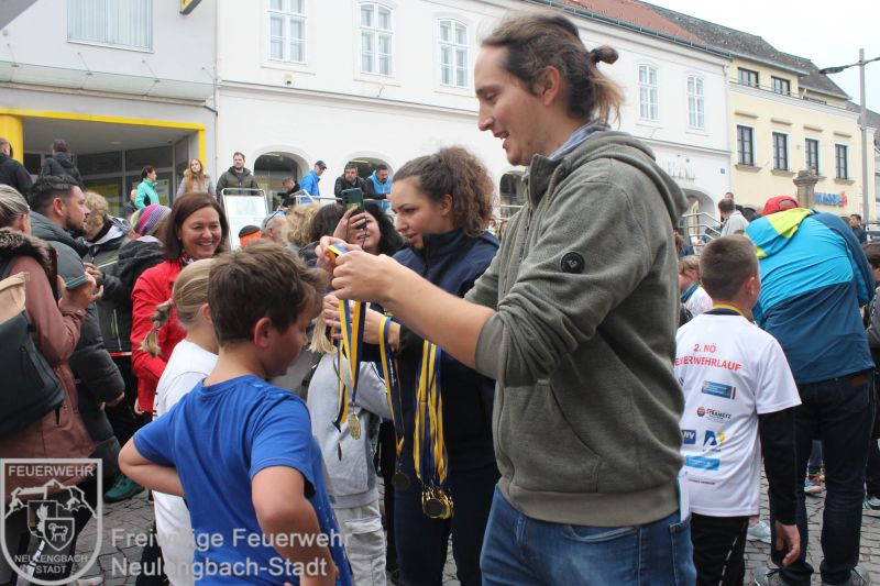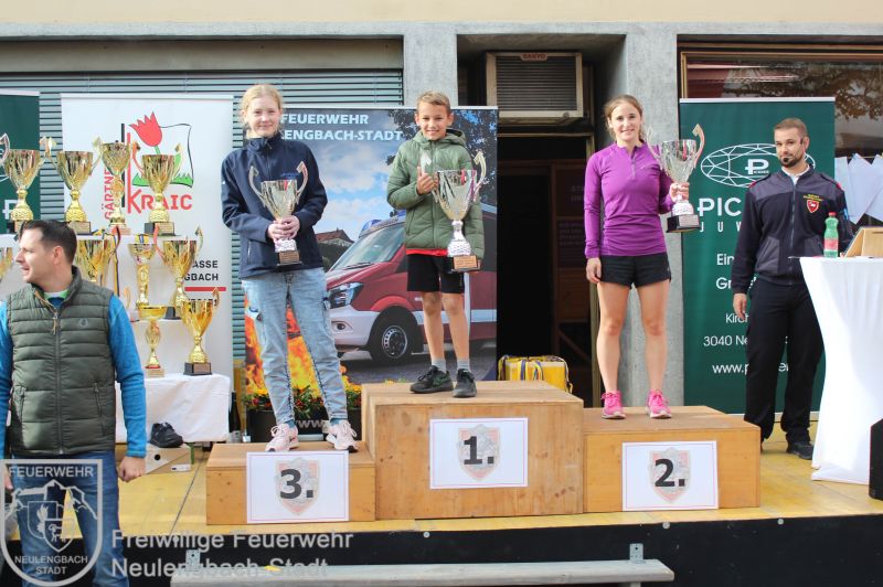 Zu Beginn fanden die Läufe der Kinder und Jugendlichen statt. Die Distanzen reichten von 200m für die kleinsten, bis 1000m für die Jugendlichen (1 Runde rund um die Burg Neulengbach). Gleich anschließend folgte die Siegerehrung für die zuvor stattgefundenen Disziplinen. Landtagsabgeordnete Doris Schmidl, Bürgermeister Jürgen Rummel, Vizebürgermeister Paul Mühlbauer und Abschnittskommandant- Stv. Rupert Bauer gratulierten zu den erbrachten Leistungen und übergaben die begehrten Pokale an die Kinder und Jugendlichen.