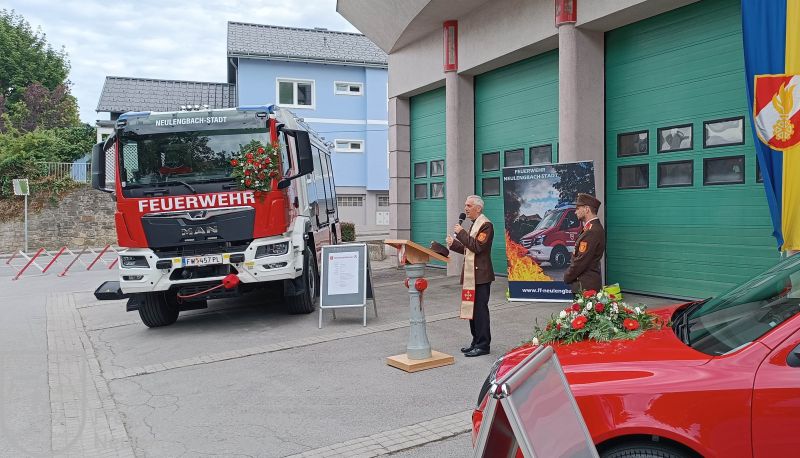 Das neue Hilfeleistungsfahrzeug 3, das Notstromaggregat und ein gebrauchtes Kommandofahrzeug wurden gesegnet.