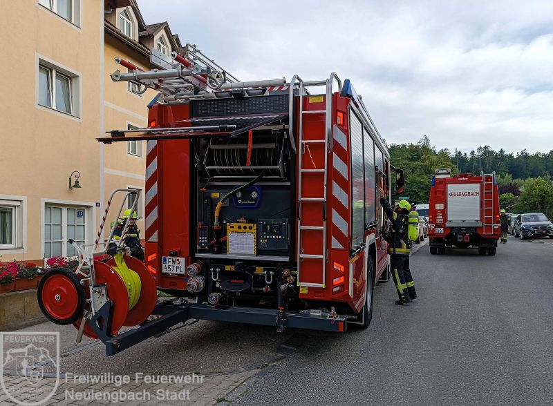 Das HLF 3 der FF Markersdorf bekam schließlich den Auftrag, einen Rettungstrupp für den ersten Atemschutztrupp der FF Neulengbach-Stadt und einen Ablaufposten zu stellen.