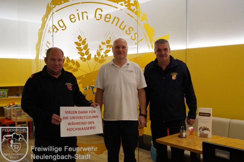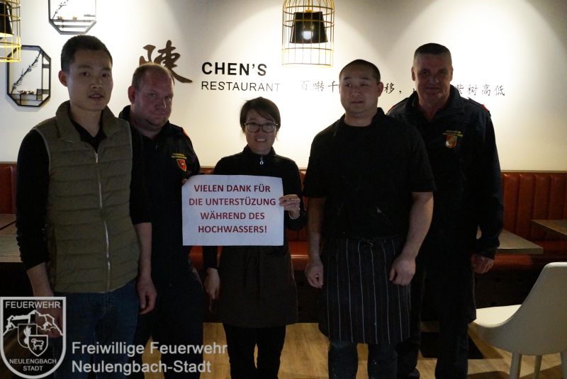 Die Firmen, welche uns sowohl mit Essenspenden versorgt, als auch mit Gerätschaften wie z.B. LKW und Bagger unter die Arme gegriffen haben. Auch bei allen Freiwilligen möchten wir uns bedanken, die im Feuerwehrhaus dafür gesorgt haben, dass die Einsatzkräfte rund um die Uhr mit Essen versorgt wurden. Außerdem wurde dafür Sorge getragen, dass die Einsatzbekleidung zwischenzeitlich immer wieder getrocknet wurde.