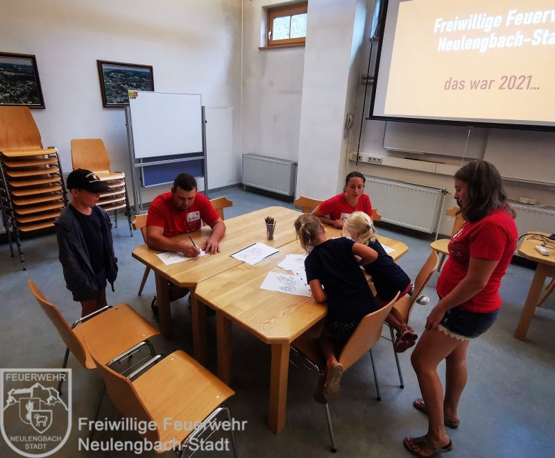Zum Kennenlernen konnten die Kinder ein Bild ausmalen und auf einer Präsentation Fotos von Einsätzen, Übungen und der Feuerwehrjugend ansehen.