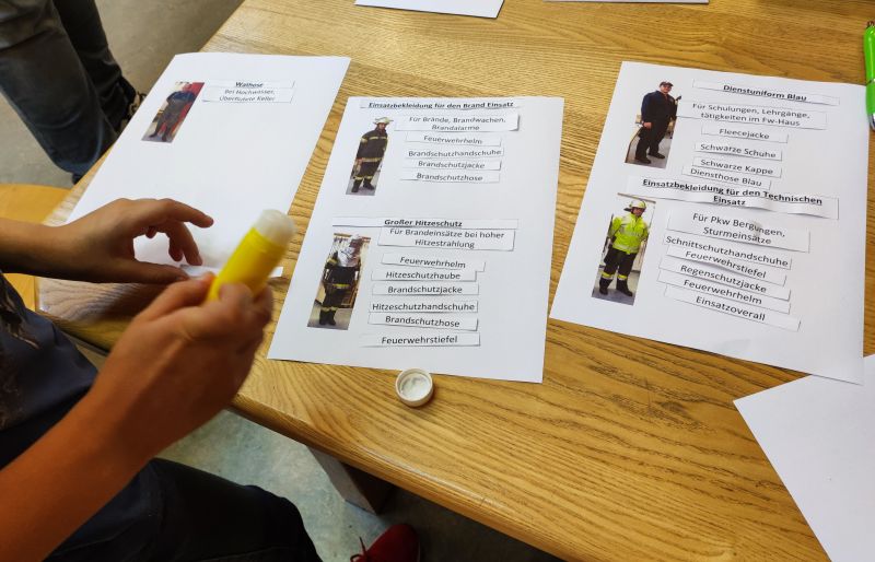 Von den Betreuern wurde ein Aufgabenblatt ausgearbeitet und die Kinder hatten die Aufgabe, die erlernten Uniformteile zuzuordnen.