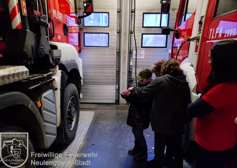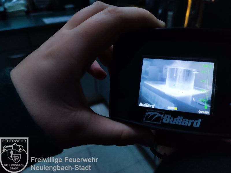 Anschließend konnten sie ihr neu erworbenes Wissen in der Praxis testen. So wurde in der Küche in einem Topf Wasser aufgekocht, damit die Kinder die Temperatur messen konnten. In der Fahrzeughalle konnten die Kinder mit Hilfe der Wärmebildkamera herausfinden, mit welchem Fahrzeug als letztes gefahren wurde, da der Motor des Wechselladefahrzeuges noch deutlich wärmer war als bei den anderen. Zu guter Letzt stand eine Personensuche an. Im verdunkelten Jugendraum orientierten sich die Kinder mit der Wärmebildkamera und konnten die versteckte Person rasch finden.