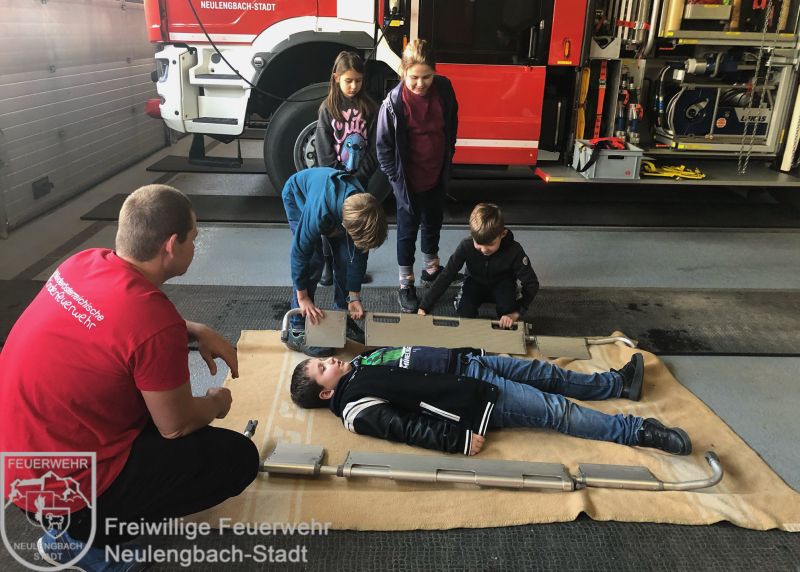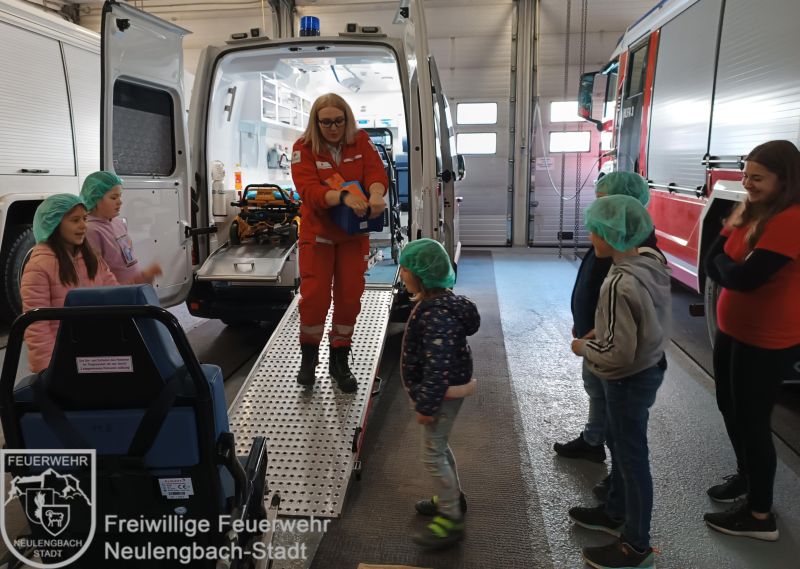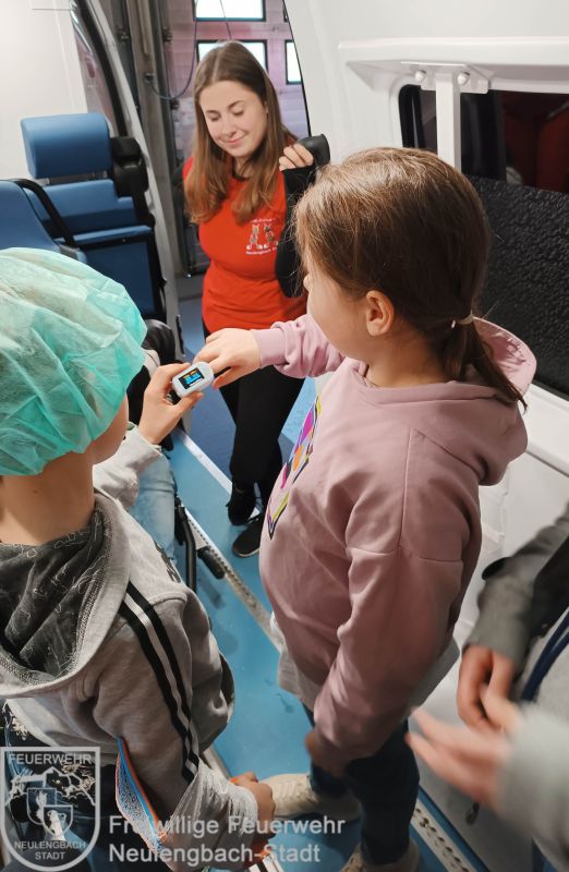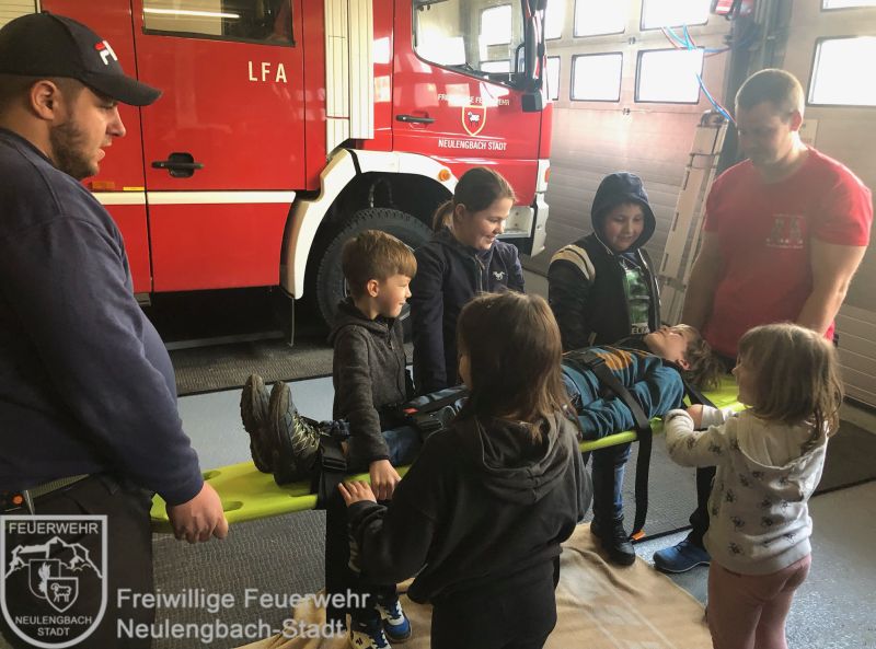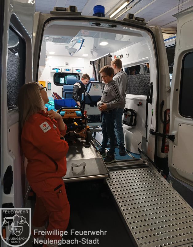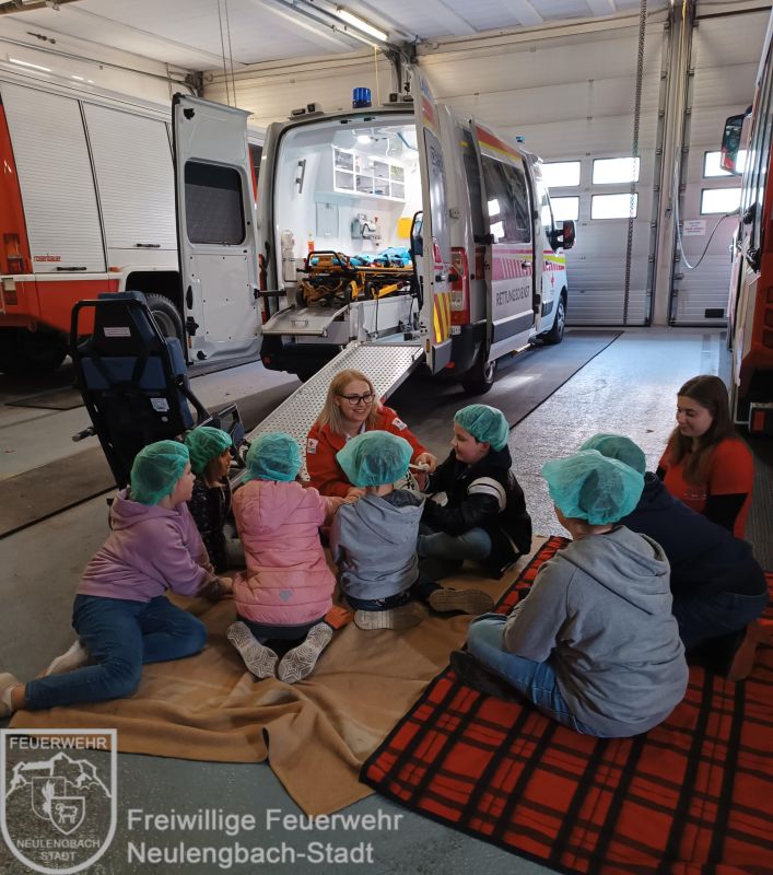 Am 22.3.2024 bekam die Kinderfeuerwehr Besuch vom Roten Kreuz Neulengbach. Rettungssanitäterin Jessica Figura kam mit einem Krankentransportwagen ins Feuerwehrhaus. Sie erklärte unseren Kids wie man eine Hand oder einen Fuß schienen kann und führte die Vakuummatratze vor. Weiter ging es dann im KTW, Blutdruck sowie Blutzucker aber auch Sauerstoffsättigung und Fieber wurde gemessen. Zum Abschluss bekam jedes Kind ein kleines Geschenk und eine Vorführung von Blaulicht und Folgetonhorn. Danke Jessica, für die spannende und lehrreiche Stunde.
