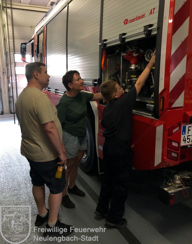 Am 28. Juni 2024 fand dann unsere letzte Zusammenkunft statt. Zu diesem Zeitpunkt besteht unsere Kinderfeuerwehr aus fünf Mädchen und sechs Burschen, worauf wir sehr stolz sind. Wir ließen die Kids Kärtchen ziehen und sie mussten dann das Uniformteil oder Gerät finden, benennen und erklären. Danach gab es ein verdientes Eis. Zum Schluss erhielten alle eine Stirnlampe, damit sie bei ihren Ferienaktivitäten nie in dunkeln sitzen, gesponsert vom Pflegeheim Beer.
