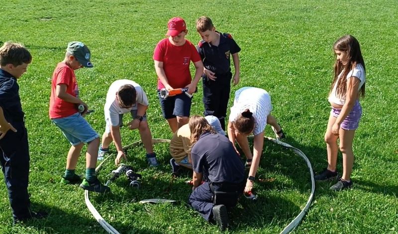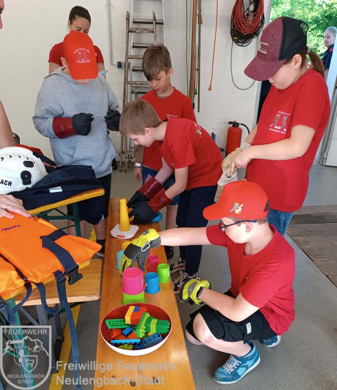 Geschicklichkeit und Schnelligkeit waren beim Parcours und Tic-Tac-Toe gefragt. Beim Knotenbinden zeigten die Kinder, was sie im Feuerwehrdienst schon gelernt hatten. Ein Rettungsauto konnte genau unter die Lupe genommen werden, ebenso wie die Einsatzbekleidung, die auch ausprobiert wurde. Die Notrufnummern wurden wiederholt und das richtige Absetzen eines Notrufs geübt. Mit dem hydraulischen Rettungsgerät und Hebekissen wurde das Gleichgewicht getestet. Zwischendurch blieb auch Zeit zum Fangen spielen und für den Austausch der Betreuer:innen. Zum Abschluss gab es für jedes Kind ein Goodybag und für jede Gruppe eine Urkunde.