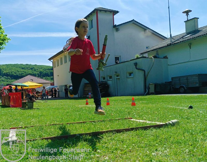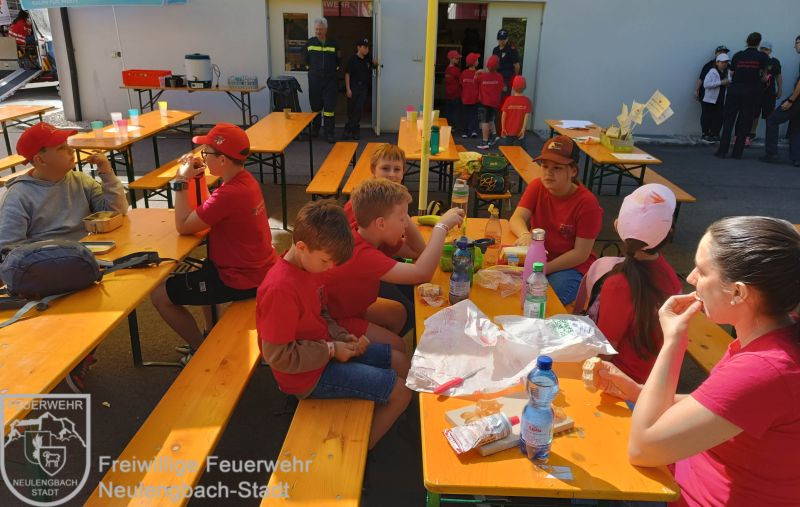 Zum Abschluss des ersten Halbjahres veranstalteten wir ein kleines, aber feines Fest. Die Kinder luden ihre Eltern und Geschwister ein, zeigten stolz das Feuerwehrhaus und die Fahrzeuge. Bei einer Fotopräsentation wurden viele schöne Erinnerungen geteilt, und an mehreren Stationen durften auch die Erwachsenen die Gerätschaften ausprobieren.