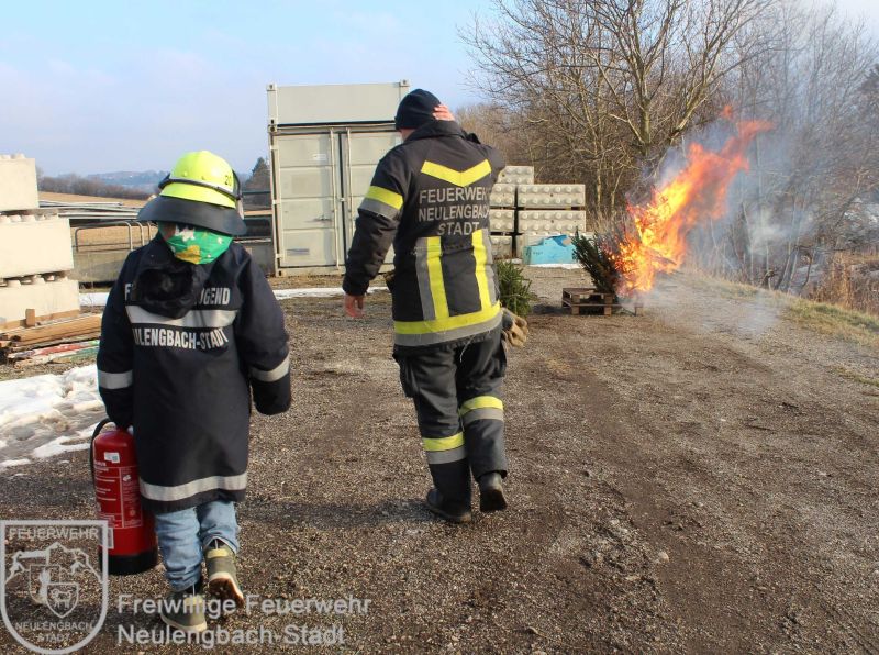 Bei unserer jährlichen Feuerlöscher-Übung wurde es richtig spannend. Ziel war es, alte Christbäume zu löschen. Nach einer kurzen Erklärung über die verschiedenen Feuerlöscher und ihre Handhabung ging es direkt in die Praxis. Trotz starkem Wind meisterten unsere jungen Feuerwehrmitglieder die Aufgabe gemeinsam mit den Betreuern hervorragend. Besonders beeindruckend war es, die Unterschiede der Löschmittel live zu sehen!