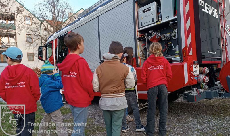 Am 20. März stand unser Allround-Fahrzeug, das HLF 3, im Mittelpunkt. Gemeinsam erkundeten wir die Beladung und besprachen, für welche Einsätze es verwendet wird. Dabei wurden auch kleine, aber wichtige Unterschiede bei den Geräten entdeckt.