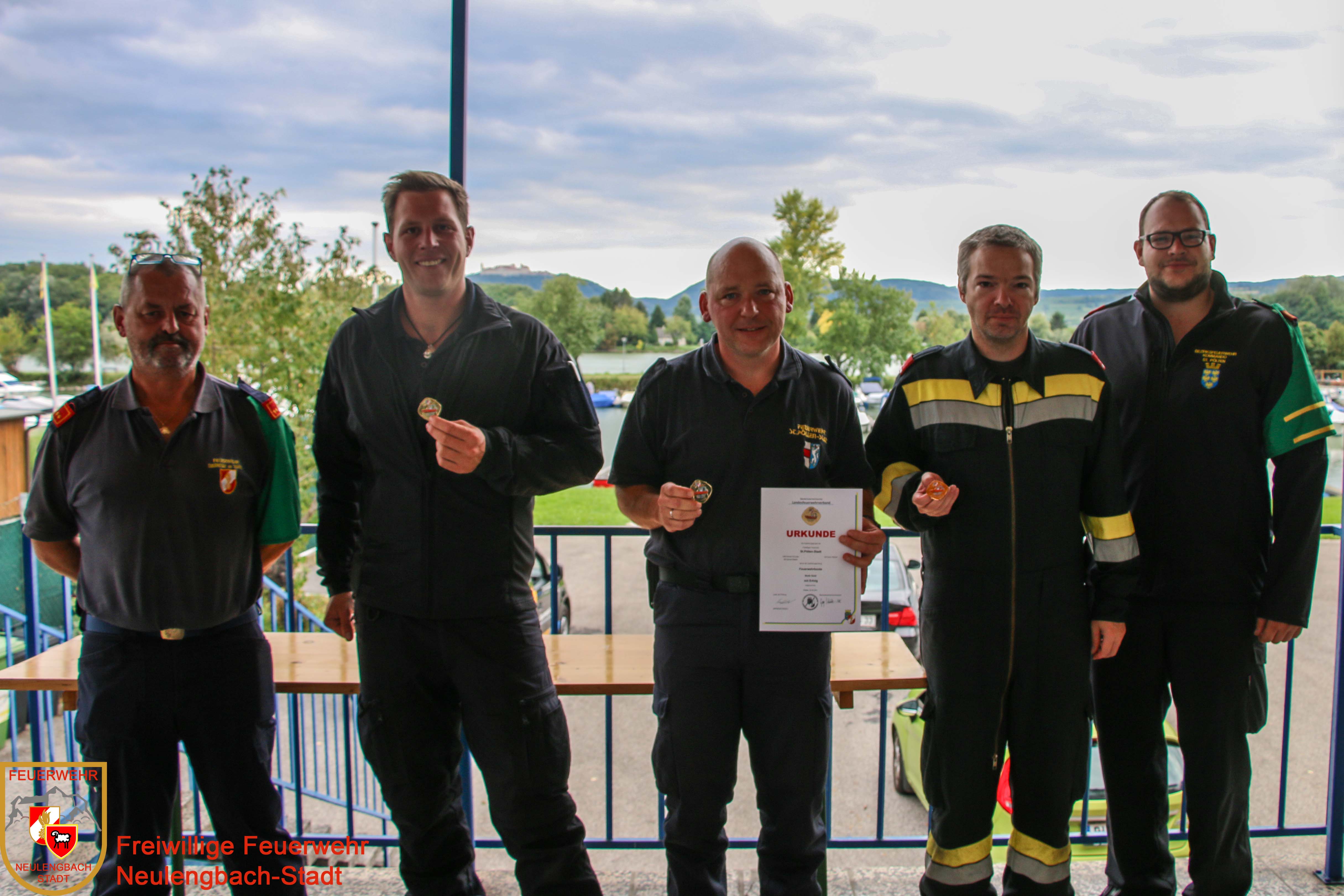 Bei der „Ausbildungsprüfung Feuerwehrboot in Gold“ musste die Besatzung eines Feuerwehrbootes (ein Feuerwehrschiffsführer und zwei Bootsmänner) vor zwei Prüfern die richtige und sichere Beherrschung eines Feuerwehrbootes demonstrieren.