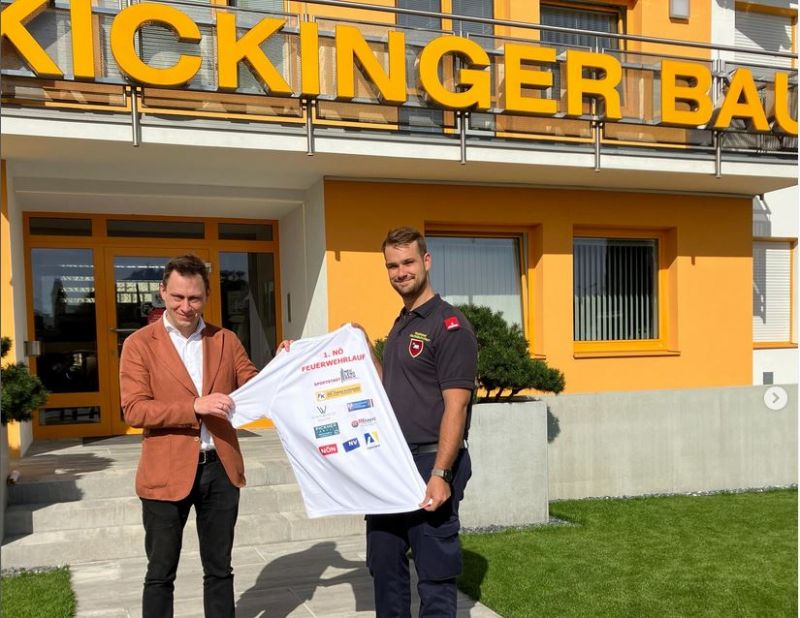 Danke an die Firma Kickinger Bau, vertreten durch Prokurist Hr. Ing. Mag. (FH) David Lasselsberger, für die Unterstützung unseres Feuerwehrlaufes, durch Beteiligung an den Kosten der Laufshirts für euer Goodie Pack.